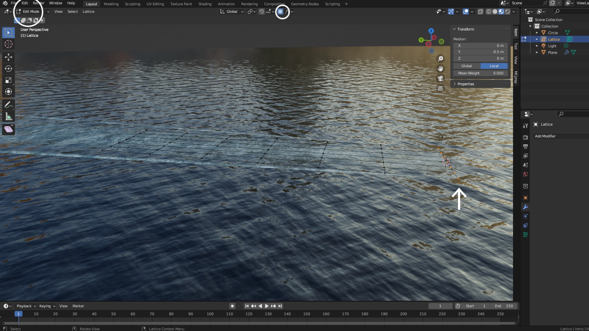 - Lattice > Object: スポイトマークをクリックして追加したラティスを選択。